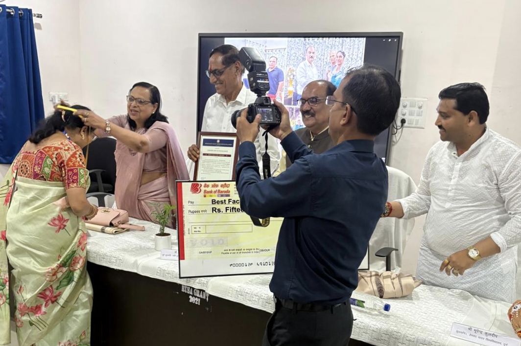 The award was presented during a formal ceremony organized at the university new campus, where distinguished academicians, faculty members, and students were present. The selection committee acknowledged the college’s consistent performance in delivering quality education, maintaining high academic standards, and fostering a student-centric learning environment. Dr. Ujjwala Supe in her award received A gold plated medal, A award certificate and Cash price of 15000 rupees.